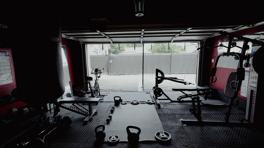 🏋️♂️Gym with free weights, squat rack, cycle, punching bag and controlled bench press.