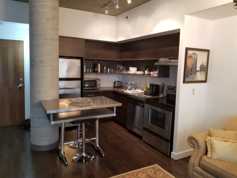 Modern condo with 1 closed bedroom for rent fully furnished (all included). Located on William St. on the 6th floor of the "McGill Ouest" building in the western part the Old Montreal district. Hard wood floor, high ceilings, furnished & decorated with taste, kitchen, living room & dining area in an open space concept, very large private balcony.
