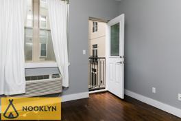 Gigantic ground floor duplex apartment on Hart and Tompkins. Big 4 bedrooms with gorgeous 2 bathrooms, renovated kitchen and plenty of natural light in common area. Laundry in unit. Roof access with Manhattan view and common courtyard. Located on beautiful tree lined block, close to G train and Brooklyn Blend.