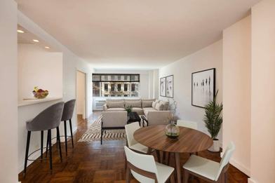 Smartly designed and in move-in condition, this two bedroom unit has also the versatility to be enjoyed as a spacious 1 bedroom with home office. The sprawling living room boasts great light and attractive skyline views. Ideal for entertaining, its open layout offers numerous options of seating areas while allowing for a large dining table. The gourmet chef kitchen, half opened onto the living room, features top of the line appliances and two refrigerators. The master bedroom fits easily a king-size bed and has 2 large closets. The second bedroom with sliding doors opening onto the living room can also be used as home-office or media room. Additional features include wooden floors throughout, a pristine bathroom, 3 out-sized closets (2 in the entrance and 1 in the living area).The attractive layout of the K line (approx.1,000 Sq. Ft.) is considered as one of the most desirable unit in the building. Building does not allowed pets for renters. Annual - $3,950 Per Month