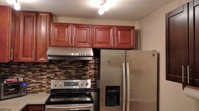2 large bedrooms (king size beds fit easily in both), an office/ kid’s room, full bath (Newer), Kitchen (newer/beautiful)/ Dining area and Sunken Living room. There are tons of cabinets in the kitchen and with high-efficiency hood fan.