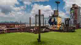 This beautiful duplex has floor to ceiling windows on each level. One and a half bathrooms and a view of the most amazing mural art you have ever seen. Not to mention the building has more amenities than you can count. Gym, screening room, bike storage, roof deck, barbecue pit, dog park, recording studio, wood shop and more!