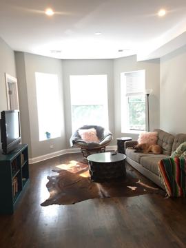 Humboldt Park near North/Kedzie. The room available is quite spacious and has beautiful light like the rest of the apartment. Measurements of room available are approximately 9’10”w X 11’0”l, closet is 10”w X 90”l. The room will come unfurnished. The apartment itself is new construction and they lacked no attention to detail. The bathroom and kitchen are especially beautiful. The ceilings are high with large windows that let in an abundance of light. Must be a dog lover! Apartment comes equipped with a 2.5 yr old boxer/hound mix. She is the biggest love bug.