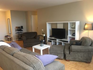 My current roommate is moving in with her partner and I love my apartment so much that I’m looking to stay. The bedroom available has the walk in closet and bathroom in the room. The furniture seen is hers and so new living room furniture will be here when she leaves. The bedroom doesn’t come furnished. A balcony and big windows with a view of high park and Mississauga really makes this apartment very special. There is heating in our unit but internet and utilities are extra for us.