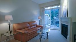 This suite is on the Top Floor and has a terrific large, covered balcony facing south and overlooking the lush garden of the building courtyard. Inside the suite, in the kitchen are black electric appliances which include the usual fridge and stove as well as the dishwasher and a microwave. The kitchen is separated from the eating and living areas only by a serving countertop and has lots of very warmly coloured wood cabinets. Extra cabinets have been added to the bathroom which is clean as new. Behind the kitchen are the washer and dryer in their own laundry closet. The bedroom has a walk-in closet with organizer. The bedroom also looks out onto the beautiful inner courtyard through 3 windows. The Den is a good 7’ X 9’ size at the far end of the suite. The whole suite is Berber carpeted except for the kitchen, entryway and bathrooms which are tiled. There are decorator shelves and nooks to hold your nick knacks, books and things. It also includes 2 parking spaces in the underground garage and gas for the fireplace is included in the rent too. MAX 2 Occupants