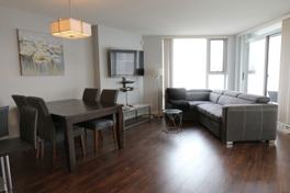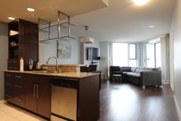 FEATURES: This move-in ready 1 large bedroom plus 1 den which can be used as a second bedroom, also includes outdoor space great for a BBQ, in-suite laundry, open concept layout, hardwood floors throughout, large kitchen with polished granite counter tops and high-end appliances. situated at Park West II, residents will have full access to the building's amenities including: a bike room, common BBQ area, common rooftop patio, common room, 24 hour concierge, fitness centre, guest suite, hot tub, library, meeting rooms, party rooms, pool, pool tables, sauna, squash courts, steam room, and theatre.