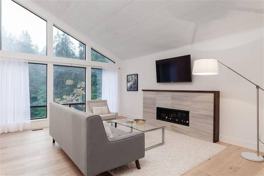 FEATURES: West Coast post and beam masterpiece! This stunning home was completely renovated down to the studs. Now boasting over 2100 square ft living space, this home offers 2 levels, 4 bedrooms, 3 full bathrooms, 15 ft vaulted ceilings, built in speaker system, wet bar with wine fridge, gas fireplace, tons of windows and natural light and sleek modern design throughout. The open concept floor plan upstairs features a chefs kitchen with large island, quartz countertops and high end stainless steel appliances. Step out from your kitchen or dining room to the private 600 sq ft patio - perfect for entertaining and summer BBQs! 3 bedrooms up and 1 bed down (downstairs room could be used as a family room), laundry room down. Lot is very private with only one neighbor and West facing with beautiful views of the Seymour River directly across the street. Outdoors are fully landscaped front and back. Attached 2 car garage and storage room.