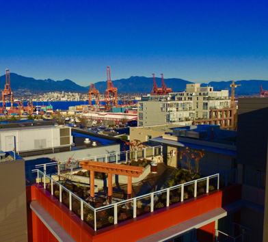 - Roof-top patio w/ panoramic views of the Vancouver Harbour and the North shore mountains