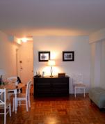 The apartment has a great layout with plenty of space for a separate living and dining area that can accommodate a full size dining table and plenty of living room furniture. In addition, it has a deep alcove which is nearly like it's own room.
