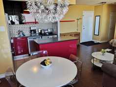 This Gorgeous COMPLETELY UPDATED 2-bedroom Condo is located on the 6th floor. It has an open concept living/dining/kitchen space, with access to a large outside patio. Stainless Steel appliances with dishwasher. Master bedroom is large enough to fit a king size bed, second bedroom is a good size as well. TONS of closet space through out the entire condo. Fabulous laminate, and tile throughout. Bathroom is a good size with bathtub, AC unit provided.
