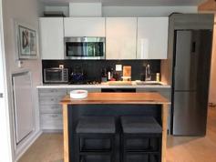 European style kitchen; quartz counter, breakfast bar, s/s appl