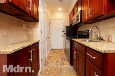 - Open kitchen with stainless steel appliances and dishwasher