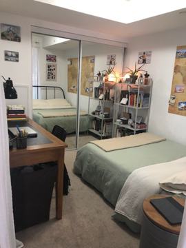 The current tenant is a quiet female who has a small dog. The dog is multi pet friendly, bonding well with all animals. The common areas of the unit are to be shared and include the living area, kitchen, laundry, balcony and storage locker. Parking is available for rent from other owners in the building in the range of 100 to 150 a month.