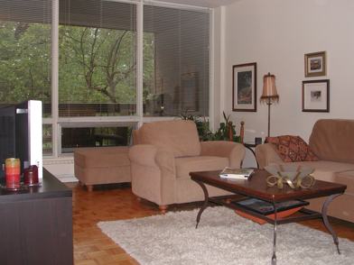 This clean and quiet 4-story concrete building give onto a quiet courtyard with mature trees and walkways. The building feature elevators and laundry facilities.