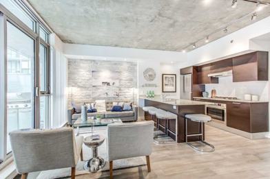 M5V Residences In The Entertainment District. Rarely Available Beautiful 1 Bedroom + Huge Den (Can Be 2nd Bdrm) And Amazing Floor Plan. Kitchen Has Large Island & Breakfast Bar. Upgrades: Freshly Painted, Bbq Gas Line On Balcony, Stone Feature Wall & Backsplash, New Hardwood Floors, New Blinds. Walk-In Closet. Large Laundry/Storage Room. Close To Financial District, Restaurants, Cafes, Parks & Ttc.
