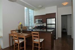 Bright And Spacious Corner Unit. Close To 900 Sq F Of Efficient Split Bedrooms Layout. Fully Furnished. Wrap-Around Balcony W/ Unobstructed Panoramic Views Of The Lake And Sunset. Conveniently Located Close To The Lake, Waterfront Trails, Hwys. Transit At The Doorstep. Resort-Style Amenities: Gym, Indoor Pool, Sauna, Yoga Room.
