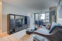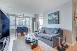 Bright And Spacious Corner Unit Located In The Heart Of Toronto! Functional Floor Plan Features Large Principle Rooms And Plenty Of Windows For Natural Light. Spacious Balcony! Laminate Floors In Bedrooms And Den. Master Features Ensuite Bathroom. Includes One Parking Space, One Locker, And Laundry Ensuite. Incredible Location, Walk To Union Station And All Amenities.