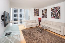 Experience true downtown living in this high floor one bedroom view home in The Residences at Millennium Tower. This open floor plan features hardwood floors, floor-to-ceiling windows and an eat-in Chef’s kitchen with stainless steel appliances, Caesarstone countertops and East city with peek-a-boo water views.