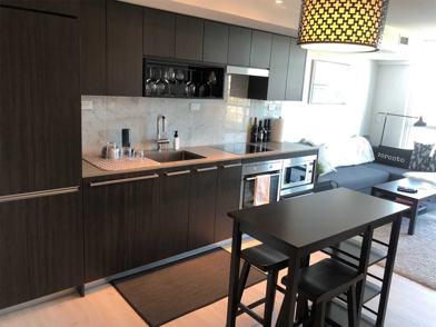 Beautiful 1 bedroom + den/office unit including parking in prime downtown toronto location. Close to lake, highway, cn tower, sobeys, entertainment, banks. Modern kitchen with built-in premium stainless steel appliances. Quartz countertops in kitchen & washroom. Large closet in master bedroom. Upgraded blackout window coverings in master bedroom.