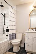 - Newly renovated bathroom with lots of storage, matte black profile shower insert (rain shower, and hand held)