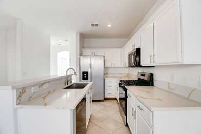 This newly renovated Las Vegas rental home stands out with two individual one-car garages flanking the elegant front entrance. Once inside, you will discover three bedrooms and two-and-a-half baths. The charming living room includes lovely vinyl plank floors and a ceiling fan for comfort. Sliding glass doors lead out into a fenced-in backyard with beautiful landscaping. A formal dining area is bright and cheerful with two substantial windows. The kitchen remains just off of this area with a built-in pantry, natural wood cabinetry, and modern stainless steel appliances. A wonderful master bedroom provides a roomy walk-in closet for storage, stunning vinyl plank floors, and an attached master bathroom for convenience. Schedule a tour today.