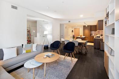 One Mission Bay affords residents the utmost in luxury living. The last condo building to be built directly on the channel, One Mission Bay's residents have some of the area's best views and best park access. Nothing else compares to being directly next to the water and overlooking ORACLE Park. The building offers numerous amenities including a 24-hour doorperson; an outdoor heated pool; resident dining and lounge areas; a large terrace with a fire pit, cabana, barbecues, and outdoor dining; a state-of-the-art fitness center; a business center and library with private meeting rooms; a reservable guest suite; and an adjacent hotel.