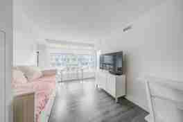 In The Heart Of Downtown With Unobstructed Sunset Views! Clean And Modern 1 Bed Condo Features A Functional Layout And Contemporary Finishes. Built-In Appliances And Roller Blinds. Beautiful Marble Tiled Bathroom. Hardwood Flooring Throughout. Access To Rec Centre With Pool And Well-Equipped Gym.