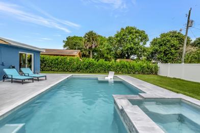 AVAILABLE ALL OF APRIL AND MOST DAYS IN NOVEMBER, DECEMBER AND JANUARY. This beautiful pool home with hot tub has everything you need! Fully furnished and turnkey. No association approval, so quick move in. Home is minutes from the downtown Delray Beach where you can go to restaurants, bars, stores, antique shops and green markets on famous Atlantic Ave. Enjoy the refreshing beach which is about 5-minute drive from home. Open concept, fully remodeled home with brand new heated salt system pool and hot tub. Fully fenced in and private yard! Home has 3 bedrooms (2 queen beds and 1 Sleep Number Adjustable Split King bed)! Both bathrooms have walk in showers. SUPER PET FRIENDLY! Great for relocators, work trips or working remotely. Owner pays water, internet, lawn and pool. SEASONAL
