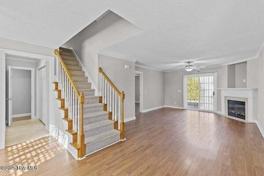 You must call agent who manages the property for all questions and assistance. Move-in ready townhome in the Ridgewood school district...hard surface floors in common areas, carpet in bedrooms/staircase, and updated fixtures. Primary bedroom on the first floor and 2 bedrooms upstairs, end unit, guest bathroom on the first floor, laundry closet on first floor, and back patio with storage closet. Out back is a good size patio and privacy with trees behind --- quiet and serene. Comes with a washer & dryer.