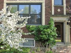 Bright and sunny two-bedroom garden apartment in impressive vintage two-flat.