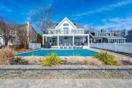 Come by land or by sea and spend the month of July on the water. Bring your kayaks, fishing poles, stand up paddleboards and pool toys! Located on open water at the mouth of the Metedeconck River, this luxury home is all about the views and relaxing. By land you will be welcomed into a custom 5br, 4 1/2 bath home. The 1st floor features an open floor plan with a wall of windows & sliding doors. You will be drawn to a spacious covered bluestone patio, with a full outdoor kitchen and hot tub. Take a swim in heated saltwater pool with a generous concrete surround and ample seating for lounging all overlooking the river. A downstairs office/flex room with a full bath is tucked away for privacy. The primary bedroom is a special refuge featuring a private roof deck with majestic views, a marble bathroom with soaker tub, walk in closet and your own washer and dryer. 3 additional bedrooms are on the 2nd floor. The 3rd floor offers an oversize bedroom, a full bath and more views! The large laundry/mud room accesses the 3 car attached garage. Close to restaurants, shopping, and beaches. The perfect spot for making your own summer memories. Available for the month of July.