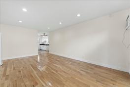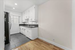 Step inside to discover beautiful original hardwood floors and a spacious living room that easily fits a designated dining area, creating a warm and inviting space for relaxing or entertaining. The alley-style kitchen features stainless steel appliances, ample countertop space, and plenty of cabinet storage, while a ceiling fan adds comfort and charm. You’ll find extra storage in the hallway with built-in shelves and cabinets — perfect for keeping your space organized.