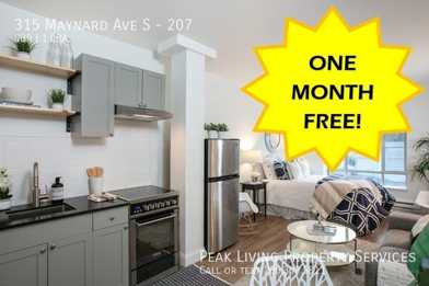 315 Maynard Ave S #207, Seattle, WA is a studio, 1 bathroom apartment for rent. It is located in the International District neighborhood of Seattle. It has apartment amenities including on-site laundry, and high ceilings. Cats and dogs are allowed, making it a pet-friendly apartment.