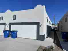 Fresh, clean, and move-in ready! This beautifully updated 2 bedroom, 2 bathroom duplex offers modern finishes, a functional layout, and the privacy of your own fenced backyard — plus a full 2-car garage for extra storage and parking. Inside, you'll love the open living space with durable vinyl wood-look flooring throughout (no carpet!), soft neutral paint, and plenty of natural light. The kitchen features crisp white shaker cabinets, sleek countertops, stainless steel appliances, and a breakfast bar that opens to the living area — perfect for everyday living or entertaining. Both bedrooms are generously sized with ceiling fans and ample closet space. The bathrooms have been tastefully updated, including a spacious walk-in shower with modern tile finishes. Step outside to your private fenced backyard with low-maintenance desert landscaping — easy upkeep and great for relaxing outdoors.