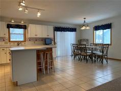 The main level provides a lot of natural light into the open floor plan of a large kitchen with a breakfast bar, dining room, and living room. The bedrooms are generously sized, and a couple have attached bathrooms. A wooden deck is accessible from a patio door off the kitchen.
