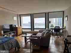 Front row fireworks view from this full river view studio at Society Hill Towers. In excellent condition, wood floors, outfitted dressing area. Spacious living room to accomodate both living , sleeping and work areas. Rent includes all utilities. Tenant to pay monthly internet/cable fee of $74.07 in addition to rent. Parking available underground at extra charge. In addition building has a year round gym and seasonal swimming pool at extra fee.