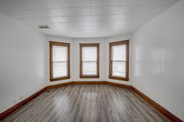 Top-floor vintage apartment featuring two generously sized bedrooms. The unit offers a blend of classic hardwood floors and durable vinyl plank flooring, complemented by updated light fixtures and fresh paint throughout. Enjoy a spacious eat-in kitchen and a bright three-season sun porch located at the rear of the unit. One assigned outdoor parking space is included. Shared laundry facilities (washer and dryer) are available in the basement. Housing vouchers, including Section 8, are welcome.