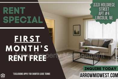 3331 Holdrege St #4, Lincoln, NE is a 2 bedroom, 1 bathroom apartment for rent. It is located in the East Campus neighborhood of Lincoln. It has apartment amenities including dishwasher, balcony, hardwood floor, and on-site laundry. Cats and dogs are allowed, making it a pet-friendly apartment.