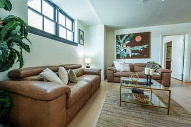 This large 2 bed/2bath unit is 1 floor above the Kaplans Building Roof, with north orientation. Has dual Primary suites great for roommates or guests.