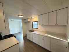 Welcome to your newly remodeled double-wide trailer in a quiet and cozy trailer park! This home boasts a spacious open floor plan with plenty of room for entertaining and relaxation. The living room is bright and airy, with new laminate flooring and fresh paint throughout. The kitchen is fully equipped with fridge, stove, dishwasher, ample counter space, and modern fixtures.