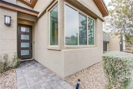 You could be at home nestled at the foothills of Blackrock. Bordering the beautiful Sloan Canyon, this freshly painted, nearly-new contemporary stunner in Pulte's popular La Vista model offers a kitchen upgraded with 42" cabinets, crown moulding, SS appliances, 5-burner gas cooktop and an extended pantry. Center sliding door at dining room overlooks the beautiful, low-maintenance desert landscape of your vast backyard. Primary suite with two walk-in closets and a custom glass walk-in shower with rainshower head. Take in the amazing sunsets with your spectacular view from the balcony. 8' interior doors, custom lighting. Pavers in front and back. Charging outlet for Tesla. Close proximity to The District to direct access to biking trails and hiking in Sloan Canyon. Approved pets are + $35/mo/each, subject to breed restrictions & must adhere to HOA rules. * Note shared attendance schooling zone; verify schools meet your own needs and satisfaction. Owner is a NV licensee.