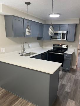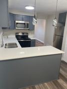 These apartments feature new carpeting in the bedrooms, wood planking throughout the living room and kitchen, resurfaced kitchen cabinets, new kitchen countertops, freshly painted with modern colors, new faux wood blinds and light fixtures along with private patio and lawn area in front of the building. Washer/Dryer in unit.