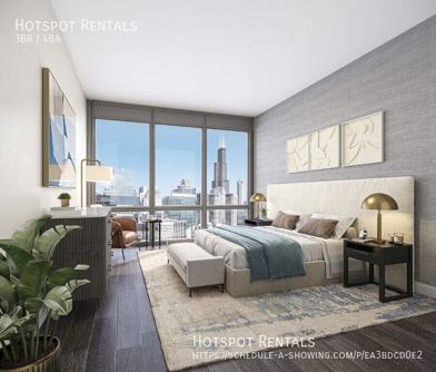 If you re looking for an exceptional urban living experience in Chicago, look no further. This brand new luxury apartment features convertible/1 bedroom to 4 bedroom floor plans that offer an unparalleled lifestyle thats perfect for anyone who wants to live at the heart of the action. One of the standout features is its expansive floor plans, which feature soaring 9 6 ceilings and floor-to-ceiling windows that flood each residence with natural light. Each unit comes with spectacular views of both the city skyline and the Fulton Market neighborhood. Kitchens are equally impressive, with back-painted glass upper cabinets, polished quartz countertops with full-height backsplash, and high-performing appliances. Other features of note include wide-plank flooring throughout the apartment as well as plenty of closet and storage space. Roller shades in all living areas (including bedrooms) and smart thermostats help keep your living space comfortable and energy-efficient. All units enjoy a keyless entry system, while select residences come with private terraces, allowing you to take in more of those stunning city views. Amenities here are plentiful, including a landscaped recreational deck with a pool, outdoor kitchens, and firepits where you can relax and unwind after a long day. There s also a reservable entertainment suite with a catering kitchen thats perfect for hosting parties. If you need to get some work done, there are plenty of co-working spaces available, including private conference rooms. Having 24-hour concierge and door attendant services, on-site dry cleaning and package delivery will make life easy. Your pets will love letting out some energy at the on site dog run. Plus, you ll enjoy the CTAs Green and Pink lines that both have stops at Morgan station, which is just a few blocks away. Disclaimer: Our brokerage provides tenant introductions and representation to renters as part of the leasing process. We do not charge or collect any fees from tenants and do not handle lease transactions directly. Compensation is received from landlords or property management companies for brokerage services upon successful lease execution. Hotspot Apartment Rentals LLC Illinois Licensed Real Estate Brokerage (#481.011892), Designated Managing Broker: Dorothy Moody (#471.006436), Virtual Office License Number 495.000153. Office of Record (mailing address only): One North Franklin Street, Suite 1200 Chicago IL 60606, Phone: (312) 782-8404 This website constitutes the virtual office of Hotspot Apartment Rentals LLC as authorized by the Illinois Department of Financial and Professional Regulation (IDFPR) under 225 ILCS 454/5-45(d). Disclaimer: PRICING COULD BE NET EFFECTIVE OF SPECIALS, please ask if there is one. Photos may not be of exact unit available and may be of various model units and various vacant units. Apartment availability and lease terms may vary. Pricing, availability, and specials are subject to change at any time and without notice. Please note that the price may be net effective of a special or concession that the building is currently running. Information is believed to be accurate, however, is subject to errors and omissions. HotSpot Rentals services the following neighborhoods: South Loop, Printers Row, Near North, River North, Gold Coast, West Loop, Fulton River District, West Loop Gate, The Loop, Streeterville, Lakeshore East, New East Side, Old Town, Medical District, University Village, Near North, River West, L..