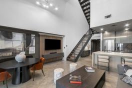 Stunning, multi-level condo in the heart of Midtown. This fully furnished contemporary unit is uniquely designed, and lives like a townhome. Located in one of the premiere boutique condo buildings in Midtown, it offers a perfect blend of sleek design and modern comfort. The expansive, open-concept main floor welcomes you with soaring double-height ceilings, seamlessly connecting the living, dining, and kitchen areas. The layout is perfect for both relaxing and entertaining. The first floor also features a full bathroom, blackout shades, and ample storage. On the second floor is a cozy guest bedroom, a spacious closet, and a laundry closet. The third floor is dedicated to a luxurious primary suite, complete with indoor and outdoor seating areas, a walk-in closet, additional storage space, and a spa-inspired bathroom featuring a double vanity, walk-in shower, and soaking tub. Residents can enjoy access to premium amenities, including a pool, hot tub, club room, BBQ grills, and a fitne...