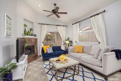 Immaculate 2 bedroom town home in Villa Royale. This great room floor plan features a large kitchen with island bar, larger bedrooms, covered/private balcony, gas fireplace, and your own garage! Villa Royale is a gated community that features a community pool, gym, and walking paths. Phenomenal location just steps from McCormick and Gainey Ranch. Villa Royale is a gated community nestled inside some of the valley's highest priced real estate. Dining, shopping, walking, hiking, biking are all within minutes of your location. You can walk to eat, drink, shop, and head to Spring Training at Salt River Fields. Close to the 101 which gives you quick access to anywhere you need to go. Unit is unfurnished, includes washer dryer and refrigerator. No pets, sorry. Available April 2026.