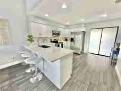 Come and relax your mind and body in this beautiful, 2-bedroom, 2-bathroom renovated condo perfectly located within walking distance to downtown Cape Coral. Spacious and fully equipped kitchen with stainless-steel appliances. Flooring throughout. Private washer and dryer inside this unit for your convenience. Screened balcony to enjoy our weather, reading a book, or enjoying your favorite beverage. Fully furnished, just bring your suitcase and enjoy the sunshine and our enjoyable beaches and weather. Step outside and discover nearby restaurants, shops, and local entertainment, just a short stroll away. Perfect for vacationers, business travelers, or seasonal guests, this property offers the ideal combination of location and comfort. Experience the best of Cape Coral right at your doorstep. Utilities and internet included.