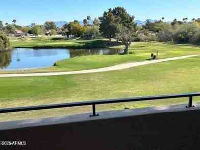 Mountain, golf course and lake views from the balcony, master bedroom and living room. Exceptional end unit with private views. Watch golfers and Greenbelt enjoyers from your deck. Cathedral ceilings. Decorator finishes. Close end-unit garage with both garage and entry doors. Stroll right onto the Greenbelt from your steps. High ceilings with lots of natural light. Outstanding community with 2 heated pools, 2 heated spas, several waterfalls, exercise room, clubhouse, & much more. Great location close to Shopping, Restaurants, Entertainment & more.