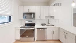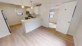 This apartment has a beautiful chef's kitchen with white cabinets, quartz countertops, stainless steel appliances, a subway tile backsplash, and built-in eating area for 2. Large bedroom with hardwood floors, LED lighting, 2 full size closets, and a ceiling fan. The bathroom is large and has been fully updated with a modern quartz vanity, large mirror, new lighting, and a new shower. Hardwood floors throughout. This apartment gets a lot of natural sunlight during the day and has recessed lighting throughout. Private heating and central air system that is controllable from your own thermostat. There are (2) washers and (2) dryers in the basement for shared use. There is a $200/year charge per tenant for laundry. (1) assigned parking spot is available and the cost is $100/mo for the duration of the lease term (not pro-rated).