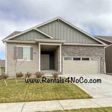 Newer home at the Promontory (West Greeley)! Featuring three bedrooms (all on the main level) with two bathrooms. Large open great room with wood floor kitchen dining room and carpeted living room. The beautiful kitchen features black stainless appliances, granite countertops, designer backsplash and large pantry. Off to one side of the house is the master bedroom with attached en suite and large walk in closet. Master bathroom features dual sinks, huge soaking tub and a glass enclosed shower with elegant touches. Guest bedrooms are on the other side of the home, with a shared guest bathroom between. Guest bathroom has a single sink with a shower tub combo. Washer and dryer hookups. Large unfinished basement, great for storage! Tankless water heater - unlimited hot water available! A max of 1-2 small dogs only (30lbs and under) with $300 pet deposit and $35 a month pet rent per pet.