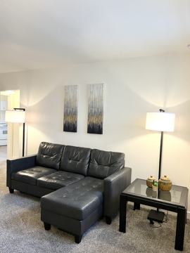 All utilities (high speed internet(500mbps), Water, Gas, Electricity, Trash and Sewer) are included in the rent. Inside, the apartment has been completely remodeled to include a fully equipped kitchen with modern appliances, a cozy living area with comfortable seating and a 61" flat-screen TV, and a luxurious bedroom with a lavish KING size bed with more than enough closet space. The unit is completely remodeled as of April 2023 and features fresh paint with new flooring, light fixtures, brand new carpet throughout, and much, much more. The apartment sits in a four unit building (all of which are designated rentals for traveling professionals) located in a charming single family neighborhood on the quiet northside of Great Falls. You'll have access to on-site laundry and mudroom facilities just steps away from your unit in the common area. A brand new high capacity GE washer and dryer have been purchased and are available to you from 8AM to 8PM 7 days a week. A large on-site garage (21 feet by 10 feet) to keep your car safe from the elements (with plenty of extra storage), electricity, and lights is also available for an additional $150 per month. This beautifully remodeled apartment has everything you need to feel at home, including luxury furniture, linens, towels, pots, pans, dishes, and even a Keurig DUO coffee maker and brand new microwave.